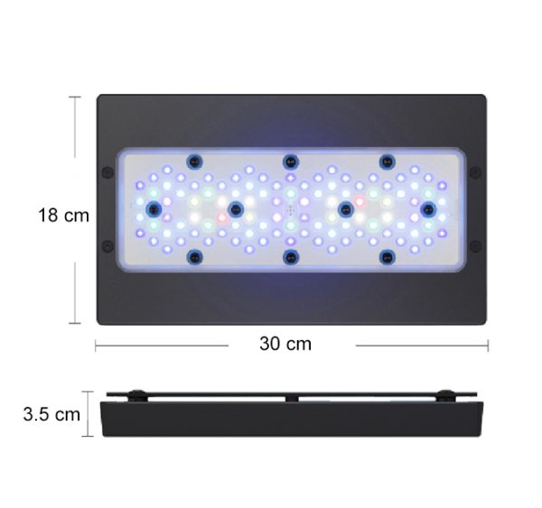 Độ phủ rộng, giảm tối đa điểm tối trong bể. Thiết kế mỏng – sang – tản nhiệt mạnh giúp tăng tuổi thọ đèn.