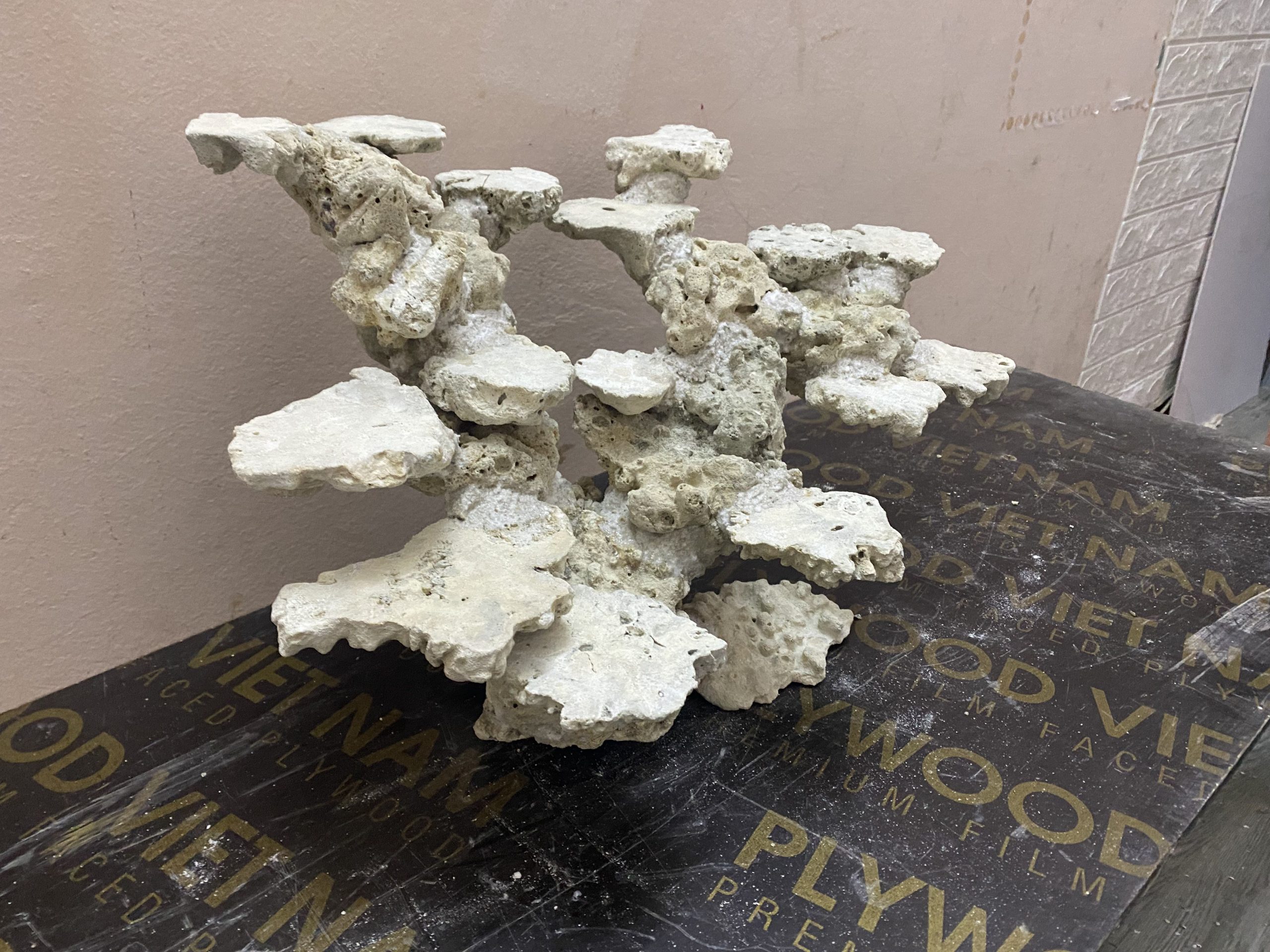 Layout sử dụng đá tự nhiên được cắt gọn và xử lý kỹ. Bề mặt đá tạo nhiều điểm bám cho san hô. Khoảng trống được tính toán giúp nước lưu thông tốt.