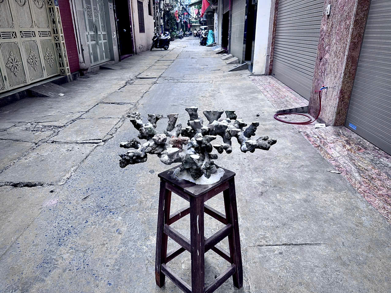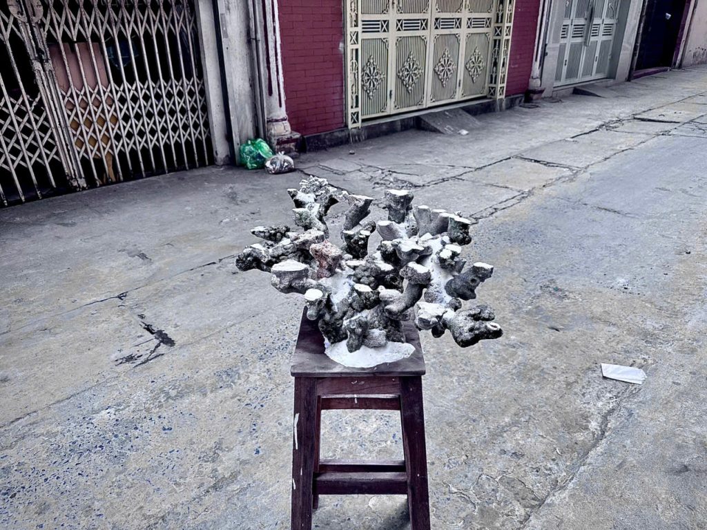 Bề mặt đá sạch, xốp tự nhiên và không lẫn tạp chất. Điều này giúp hệ vi sinh bám nhanh và ổn định sớm. Khoảng trống giữa các khối đá được mở rộng để ánh sáng xuyên sâu hơn.